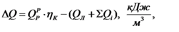 q4 – потери теплоты с механической неполнотой сгорания, %; Qл – количество теплоты, излучаемой объемом газов топки и воспринятой радиационными поверхностями, кДж/м3; Qi – количество теплоты, воспринятой теплообменными поверхностями при охлаждении омывающих эти поверхности газов, кДж/м3.