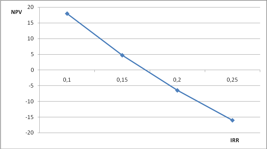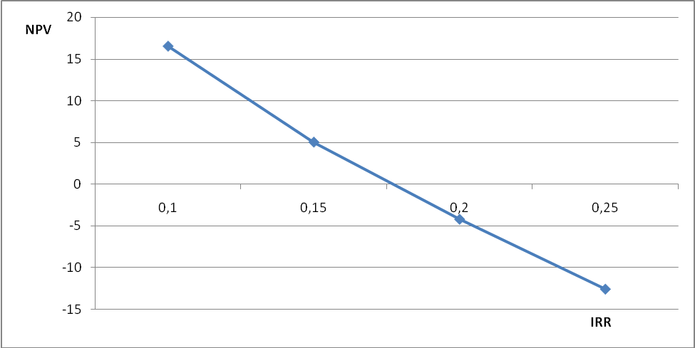 На основании полученных данных строится график NPV=f(IRR), который представлен на рис 2.1.