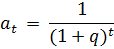 a 1 = (1+ q /100)− 1 = (1+11/100)− 1 = 0, 901 a 2 = (1+ q /100)− 2 = (1+11/100)− 2 = 0, 812 a 3 = (1+ q /100)− 3 = (1+11/100)− 3 = 0, 732 a 4 = (1+ q /100)− 4 = (1+11/100)− 4 = 0, 659 a 5 = (1+ r /100)− 5 = (1+11/100)− 5 = 0, 593