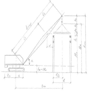 Рисунок 3 – Схема для расчетов технологических параметров при монтаже конструкций самоходным стреловым краном