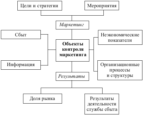 Используются следующие формы контроля: стратегический контроль – оценка стратегических решений маркетинга с точки зрения соответствия внешним условиям деятельности предприятия. Стратегический контроль и ревизия маркетинга – относительно регулярная, периодическая сфера деятельности службы маркетинга предприятия; оперативный контроль – оценка уровня выполнения текущих (годовых) планов. Цель такого контроля – установление соответствия текущих показателей плановым или их расхождения. Такое сопоставление возможно при условии, что показатели годового плана распределены по месяцам или кварталам. Основные средства контроля: анализ объема продаж, анализ доли фирмы на рынке, анализ соотношения «затраты – объем сбыта» и наблюдение за реакцией покупателей; контроль прибыльности и анализ затрат – оценка рентабельности маркетинговой деятельности предприятия в целом, по отношению к конкретным товарам, ассортиментным группам, целевым рынкам и сегментам, каналам товародвижения, средствам рекламы, коммерческому персоналу и т.д. Объекты маркетингового контроля представлены на рис. 8.4.