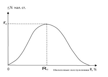 При r0 = max.R. Дальнейшее увеличение налоговой ставки сопровождается уменьшением налоговых поступлений. При r = 100 % производство становится бессмысленным. Лаффер считал, что государство должно изымать не более 30 % дохода предприятий и населения.