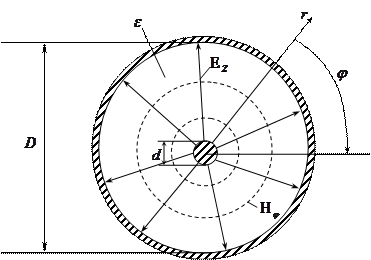 Рис. 4.1 Структура поля коаксиальной линии на волне типа –Т
