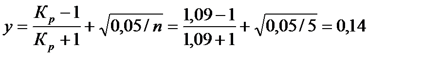 По мнению экспертов, качество изделий относительно максимального и минимального качества различается в 1, 09 раз (4, 9/4, 5) [3], тогда коэффициент размаха Кр будет равен 1, 09. Рассчитаем параметр у по формуле: