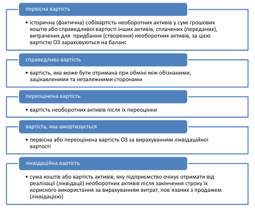 Для відображення в бухгалтерському обліку різних операцій з ОЗ використовуються різні оцінки їх вартості.