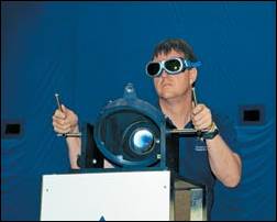На рисунке 13 представлен эксперимент, проводимый американской корпорацией NASA в 2002 году. Прожектор передает энергию для пропеллера радиоуправляемой модели самолета. Но из нескольких киловатт мощности прожектора солнечная батарея принимает и пускает в дело лишь десятки ватт. Год спустя вместо прожектора уже использовался лазер, благодаря чему удалось повысить КПД и сократить размер солнечной батареи.