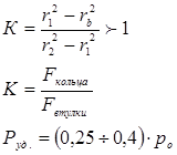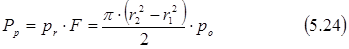 ро – давление в аппарате Учитывая небольшую ширину поверхности контакта (для dв = 40÷ 100 мм, b = 3÷ 6 мм) принимают, как правило, линейное распределение расклинивающего давления по радиусу поверхности и его рассчитывают как