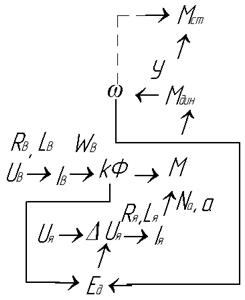 ω = Ед = кФω На структурной схеме переменные обозначаются стрелками, взаимосвязи – прямоугольниками. Wяц =