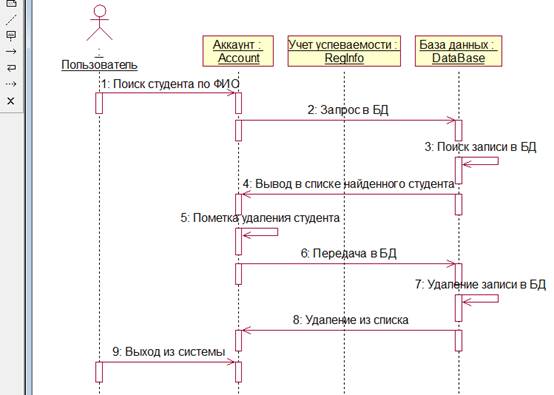 Рисунок 3.4 – Диаграмма последовательности для варианта использования «Удаление студента из списка»