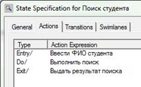 Откроем окно спецификации состояния «Ожидание ввода ФИО студента», которое изображено на рисунке 7.2.