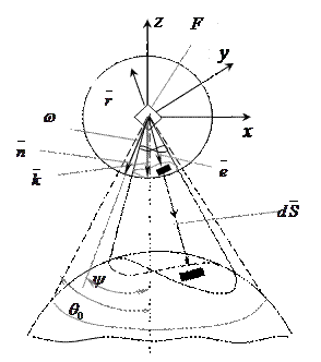 Определениепотока, отраженногоотпланеты Комбинированный угловой коэффициент является также чисто геометрической характеристикой системы КА - планета. Но он учитывает неравномерный, косинусоидальный характер распределения по поверхности планеты плотности уходящего излучения (в частности, отраженного излучения Солнца). Таким образом, коэффициент