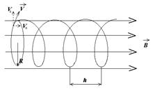 Радиус траектории движения частицы в плоскости, перпендикулярной направлению поля определяется из уравнений (38.2) и (38.3). Таким образом, для электрона, движущегося в магнитном поле