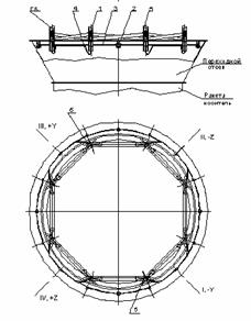 Пружинные толкатели (см. рис.8) состоят из корпуса поз.1, в котором расположен шток поз.2 и пружина поз.З. В рабочем состоянии пружина сжата, шток удерживает пружину в таком состоянии, упираясь в кронштейн разгонного блока.