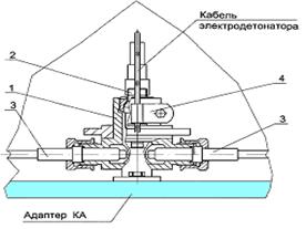 Рисунок 7 - Узел инициирования с ножом: 1-корпус; 2-электродетонатор; 3-транслятор; 4-хомут.
