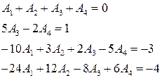 Приравнивая коэффициенты при одинаковых степенях x в обеих частях тождества (*), получаем систему четырёх уравнений первой степени с четырьмя неизвестными: