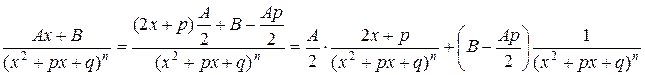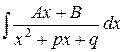 Если в знаменателе дроби вместо трёхчлена x2+px+q стоит трёхчлен ax2+bx+c (a≠ 0), то коэффициент a выносится за скобку и данный случай сводится к предыдущему.