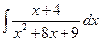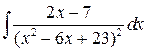 Первая дробь интегрируется методом поднесения переменного множителя под знак дифференциала, что приводит к натуральному логарифму модуля знаменателя. Для интегрирования второй дроби в знаменателе выделяют полный квадрат: