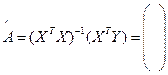 де X – матриця пояснюючих змінних, Y – вектор залежної змінної; XТ – матриця транспортована до матриці X (ТРАНСП)[1]. Крок 1. Формуємо матриці Х, У, XТ Крок 2. Помножимо матрицю XТ на матрицю X (МУМНОЖ)[2]. Крок 3. Помножимо матрицю XТ на матрицю Y та обернемо добуток (XТX) (МОБР)[3]. Крок 4. Перемноживши дві останні матриці, отримаємо оператор оцінювання (МУМНОЖ)[4]: