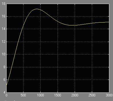 Рис.2.-b) Графік вихідного параметру регулятора без підсилення і похибки регулювання по каналу температури (Scope1)