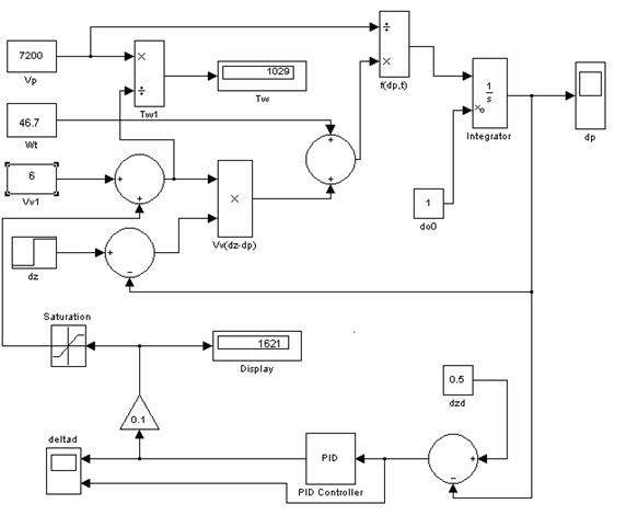 Умова роботи Встановити ПІД регулятор на моделі опалення і вентиляції тваринницької ферми. Завдання для моделі брати по виконаному раніше варіанту. Задати коефіцієнти по каналах вхідного сигналу інтегрування і і диференціювання вхідного сигналу відповідно: 1, 1, 0. Значення завдань для вхідних параметрів взяти для каналу температури – 15 градусів С, для каналу вологовмісту – 8, 5 г/кг сухого повітря. Встановити збурення для каналу температури -5 градусів від заданого значення температури зовнішнього повітря і для каналу вологовмісту + 1г/кг сухого повітря від заданого значення вологовмісту зовнішнього повітря. Вивести на екран осцилографа криві зміни температури або вологовмісту в приміщенні – у(t), похибки регулювання Dу(t), значення вхідного параметру до підсилення х(t) і на дисплей кінцеве значення витрат енергії або повітря після закінчення регулювання.