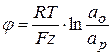 Образование двойного слоя ионов приводит к появлению определенных электрических потенциалов на границе твердой и жидкой фаз. На твердой поверхности возникает заряд, называемый φ -потенциал. Знак φ -потенциала совпадает со знаком заряда потенцалобразующих ионов. φ -потенциал можно рассчитать по уравнению Нернста: