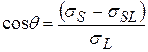 Величина Уравнение известно как соотношение Юнга-Дюпре, которое устанавливает условие равновесия сил, из которого можно определить ПН твердого тела или межфазное натяжение: