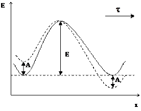 Если вероятность перехода МКЕ через энергетический барьер во всех направлениях одинакова, направление течения отсутствует. Воздействие на систему внешней силы эквивалентно снижению склонов потенциального барьера в направлении его и увеличению в направлении от него (кривая пунктиром на рис. 9.4).