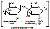 В качестве исключения к группе ГП относят ГП крови, которые определяют группу крови. В них на углеводную часть приходится до 80%, т.к. углеводный компонент не имеет регулярного строения. В этих белках между белковой и небелковой частями ковалентная связь, которая может быть разной по природе: - гликозил-амидная: моносахариды связаны с амидной группой аспарагина (АСП). Такая связь в белках – иммуноглобулинах, гормонах и т.д. - О-гликозидная: моносахарид образует гликозидную связь с гидроксилсодержащей АК – СЕР, ТРЕ. Такая связь характерна для муцина слюны, групповых веществ крови. Также этот тип связи может образовываться при взаимодействии моносахарида с ОН-группой окси-ПРО – в коллагеновых белках. Свойства ГП: 1. термостабильность, т.е. при увеличении и уменьшении температуры белки не денатурируют; 2. плохо перевариваются трипсином и пепсином в ЖКТ; 3. специфичность молекулы – из них построены «узнающие участки» (узнают макромолекулы или участки поверхности клеток); 4. быстро выводятся из клеток и находятся в межклеточной жидкости или на поверхности клеточных мембран. Биологическая роль ГП: 1. транспортная роль - связываются с различными веществами и переносят их. Пр.: ГП трансферин переносит ионы железа, церулоплазмин – переносит ионы меди, транскортин - гормоны. 2. каталитическая. ГП-ми являются многие ферменты. Пр.: пероксидаза, рибонуклеаза, энтерокиназа, холинэстераза. 3. защитная - входят в состав различных слизей, например муцин слюны. 4. свёртывающая. Пр.: фибриноген, протромбин участвуют в системе свертывания крови. 5. определяют группу крови. От строения нуклеотидных цепей ГП зависит специфичность ГП, определяющего группу крови. 6. ГП клеточной мембраны выделяются рецепторами и участвуют в механизмах межклеточного взаимодействия и узнавания. 7. регуляторная – некоторые гормоны являются ГП. Пр.: гонадотропный гормон, фолликулостимулирующий гормон. Протеогликаны (ПГ). Углеводный компонент приходится 95%. Углеводные компоненты представлены линейными гетерополисахаридами системного строения. Их строение однотипно. Структурная единица – димер, состоящий из моносахаридов 2-х видов, которые, соединяясь, образуют структурную единицу полисахаридов. [рис. МС 1 и МС 2 соеденены между собой b-1, 3-гликозидной связью, а сами эти фрагменты - собой b-1, 4-гликозидной связью] МС1 – глюкуроновая кислота, МС2 – N-ацетилгексозамин. Среди гетероплисахаридов, входящих в состав ПГ, основными являются: гиалуроновая кислота, хондроитинсульфаты, гепарин и др. Гиалуроновая кислота. Полимер, структурная единица – димер, состоящий из глюкуроновой кислоты и N-ацетилглюкозамина.