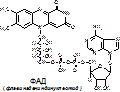 ФАД и ФМН являются коферментами дегидрогеназ. Эти ферменты катализируют отщепление от субстрата водорода, т.е. участвуют в реакциях окисления–восстановления. Например СДГ – сукцинатдегидрогеназа – катализирует превращение янтарной к-ты в фумаровую. Это ФАД-зависимый фермент. [рис. COOH-CH2-CH2-COOH® (над стрелкой – СДГ, под – ФАД и ФАДН2) COOH-CH=CH-COOH]. Флавиновые ферменты (флавинзависимые ДГ) содержат ФАД, который в них является первоисточником протонов и электронов. В процессе хим. реакций ФАД превращается в ФАДН2. Рабочей частью ФАД является 2 кольцо изоалоксазина; в процессе хим. реакции идет присоединение двух атомов водорода к азотам и перегруппировка двойных связей в кольцах.