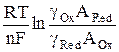 где ARed = Подставляя выражения для поверхностных концентраций из (8) и (9) в уравнение Нернста, получим