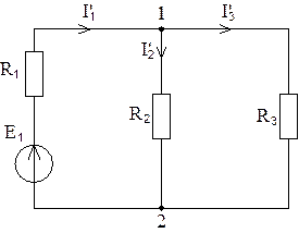 2. Исключим теперь вместо источника ЭДС Е2 источник ЭДС Е1. Соответствующая расчетная схема показана на рис. 3.