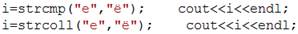 strcoll(s1, s2) – функция аналогична strcmp, но учитывает локальные настройки по алфавиту (например, правильно сравнивает букву ё). Пример использования функции: