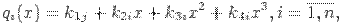 Сплайны стали широко использоваться в вычислительной математике сравнительно недавно. В машиностроительном черчении они применяются уже давно, так как сплайны – это лекала или гибкие линейки, деформация которых позволяет провести кривую через заданные точки (xi, уi). Используя теорию изгиба бруса при малых деформациях, можно показать, что сплайн – это группа кубических многочленов, в местах сопряжения которых первая и вторая производные непрерывны. Такие функции называются кубическими сплайнами. Для их построения необходимо задать коэффициенты, которые единственным образом определяют многочлен в промежутке между данными точками. Например, для некоторых функций (рис.) необходимо задать все кубические функции q1 (x), q2 (x), …qn (x). В наиболее общем случае эти многочлены имеют вид: