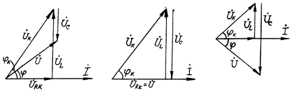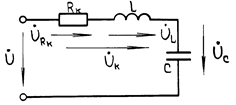 При расчете неразветвленной электрической цепи синусоидального тока с последовательно соединенными приемниками, например катушкой индуктивности и конденсатором, характеризуемых параметрами Rк, L и С (рис.1), исходят из уравнения второго закона Кирхгофа для мгновенных значений напряжений: u = uRк+uL+uC.