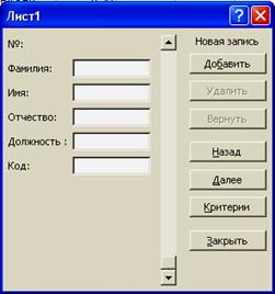 2. Рассмотрим работу с формой базы данных, для этого добавим при помощи формы еще двух сотрудников. Выполним: \ Данные \ Форма...