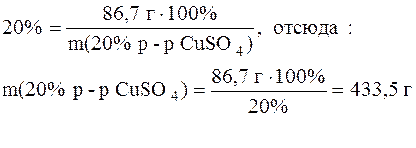 Поскольку сульфат меди приходит в конечный раствор из исходного раствора с массовой долей соли 20%, то для этого раствора справедливо следующее выражение: