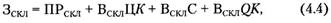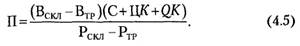 где П — годовая потребность данного вида материала в натуральных единицах; Ртр — расходы по завозу единицы продукции на склад предприятия-потребителя при транзитном снабжении, включая оплату транспортных тарифов за погрузочно-разгрузочные и экспедиционные работы; Рскл — расходы по завозу единицы продукции на склад предприятия-потребителя при складской форме снабжения, дополнительно включая оплату складских наценок; Втр — величина производственного запаса в натуральных единицах при транзитных поставках; Вскл — расходы по завозу единицы продукции на склад предприятия-потребителя при складских поставках; Ц — оптовая цена материала, руб.; К — коэффициенты эффективности капитальных вложений; С — годовые расходы по хранению единицы запаса на складе потребителя, руб.; Q — капитальные вложения на создание складской емкости для хранения единицы запаса, руб. Можно определить максимальный годовой объем потребления материалов, при котором экономически целесообразной является складская форма снабжения: