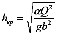 где Q – расход воды; b – ширина потока (лотка); g = 981 см/с2; hc – глубина в сжатом сечении.