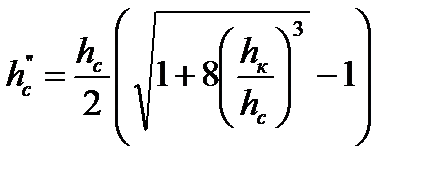 В инженерной практике для определения вида прыжка рассчитывается вторая сопряжённая глубина hс11 относительно глубины в сжатом сечении hc , т.е. глубина в Н.Б., при которой прыжок начинается в сжатом сечении, а hI = hc