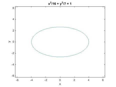 > > syms x y > > ezplot('x^2/16 + y^2/7 = 1')