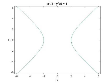 > > syms x y > > ezplot('x^2/4 - y^2/5 = 1')