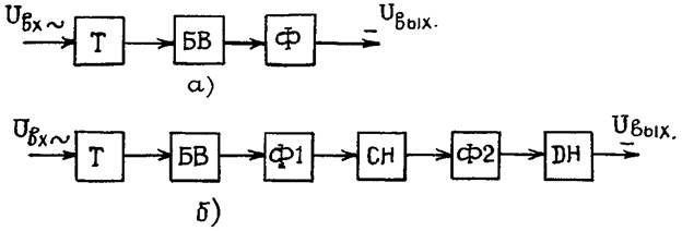 Рисунок 1.8 - Типовые структурные схемы нерегулирующих ИВЭ-выпрямителей: а - нестабилизирующий; б - стабилизирующий