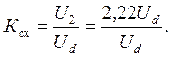 С учетом этих связей запишем все коэффициенты - показатели качества выпрямления рассматриваемой схемы выпрямления. 1. Коэффициент схемы К сх. Это есть отношение действующего значения напряжения на вторичной обмотке трансформатора U 2 к средневыпрямленному значению Ud