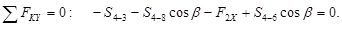 Для определения усилия S8-4 составляем уравнения проекций на ось Y, перпендикулярную двум другим неизвестным усилиям S3-4 и S8-7: