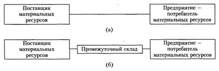 36. Задачи и функции закупочной логистики. Основной целью закупочной логистики является удовлетворение потребностей производства в материальных ресурсах с наибольшей экономической эффективностью. Для достижения этой цели необходимо решить следующие задачи: рационализировать сроки закупки сырья и комплектующих изделий (материалы, закупленные ранее намеченного срока, станут дополнительной нагрузкой на оборотные фонды предприятий, а опоздание в закупках может сорвать производственную программу; обеспечить соответствие количества поставок и потребностей в них (избыток или недостаточное количество поставляемых товарно-материальных ресурсов негативно влияет на баланс оборотных фондов и устойчивость выпуска продукции и может вызвать дополнительные расходы при восстановлении балансового оптимума). Важнейшей функцией служб снабжения является выбор поставщика для фирмы. Осуществляется тремя методами: через торгового агента; путем коллегиального обсуждения (отдел закупок, производственный отдел и отдел технического контроля качества продукции); через посреднические фирмы. Применяют две формы снабжения: транзитную (рис. 4.1а) и складскую (рис. 4.1б).