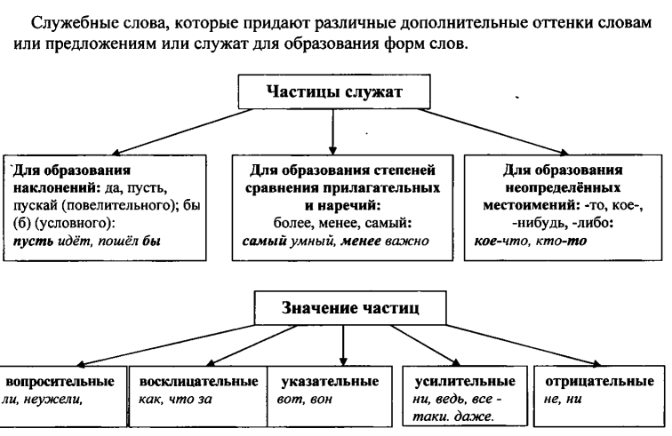 Характерные особенности служебных слов К служебным словам относятся частицы, предлоги, союзы и связки. Служебные слова, в противоположность знаменательным, не обладают номинативной функцией, т.е. не являются названиями предметов, признаков, процессов, а служат для выражения отношений между явлениями действительности, которые названы словами знаменательными. В силу этого служебные слова употребляются в речи только в соединении со знаменательными словами. Не обладая номинативной функцией, служебные слова не являются членами предложения, а используются как формально-грамматические средства языка: предлоги выступают в подчинительных словосочетаниях, союзы - при однородных членах и в сложных предложениях, частицы - при отдельных словах и в вопросительных и восклицательных предложениях. Со стороны фонетической структуры служебные слова также отличаются от слов знаменательных. Ударение, являющееся характерным признаком знаменательного слова, обычно отсутствует у слов служебных. Ср.: Чт о (местоимение) день грядущий мне готовит? (П.); Я надеюсь, что (союз) вы не откажетесь отобедать у меня (П.). Служебные слова могут превращаться в аффиксы словообразовательного и формообразовательного типа. Это наблюдается в тех случаях, когда служебное слово становится неотделимым от знаменательного слова и изменяет его значение. Так, например, аффикс то, присоединяясь к местоимениям, образует местоимения неопределенные: что-то, какой-то и др. Служебные слова образовались из знаменательных слов. Например, предлоги под и перед соотносятся с существительными под (выстилка внутри печи), перед (ср. «заколоченный перед дома»); союзы хотя - с деепричастием хотя (от хотеть) и если - с сочетанием есть ли. Служебные слова неизменяемы (за исключением связки), морфологически нечленимы.