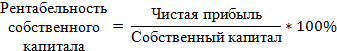 Рентабельность является относительным показателем. Она характеризует уровень доходности предприятия. Этот показатель отражает эффективность работы организации в целом, показывает доходность отдельных направлений деятельности. Показатели рентабельности применяются в финансовом анализе, поскольку они способны более полно, чем прибыль, охарактеризовать и отразить реальные результаты хозяйственной деятельности. Их величина демонстрирует соотношение результата деятельности с потребляемыми ресурсами. Для собственников компании самым важным показателем является рентабельность собственного капитала. Он выступает основным критерием эффективности использования вложенных ими средств. Анализ рентабельности позволяет отразить качество финансового состояния компании и увидеть ее перспективы на будущее. Поэтому при анализе особое внимание уделяется качеству показателей и их правильной группировке по укрупненным группам. От уровня рентабельности зависит инвестиционная привлекательность организации, величина дивидендных выплат.[5] Рентабельность собственного капитала характеризует эффективность использования вложенных в организацию собственных средств. Рентабельность собственного капитала показывает, сколько чистой прибыли приходится на рубль собственных средств: