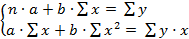 Решая систему нормальных уравнений либо методом последовательного исключения переменных, либо методом определителей найдем искомые оценки параметров a и b. Можно воспользоваться следующими готовыми формулами (3):