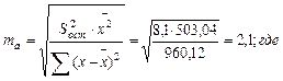 Определим критическое значения критерия по таблице при Fкр(m; n-m-1; a); Fкр(1; 4; 0, 05)=7, 71 Так как Fфакт > Fкр, то с вероятностью 95% можно утверждать, что уравнение регрессии является статистически значимым и гипотезу Н0 о случайном характере связи следует отклонить. Оценку статистической значимости параметров регрессии проведем с помощью t-статистики Стьюдента, для этого определим стандартную ошибку для каждого параметра. Для того, чтобы рассчитать данные показатели, используем данные таблицы 7. Таблица 7 – Вспомогательная таблица для расчета стандартных ошибок