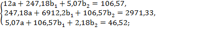 Подставим данные из таблицы 5, тогда система нормальных уравнений примет следующий вид: